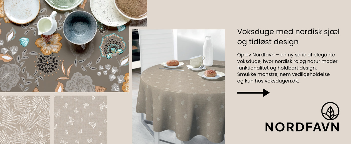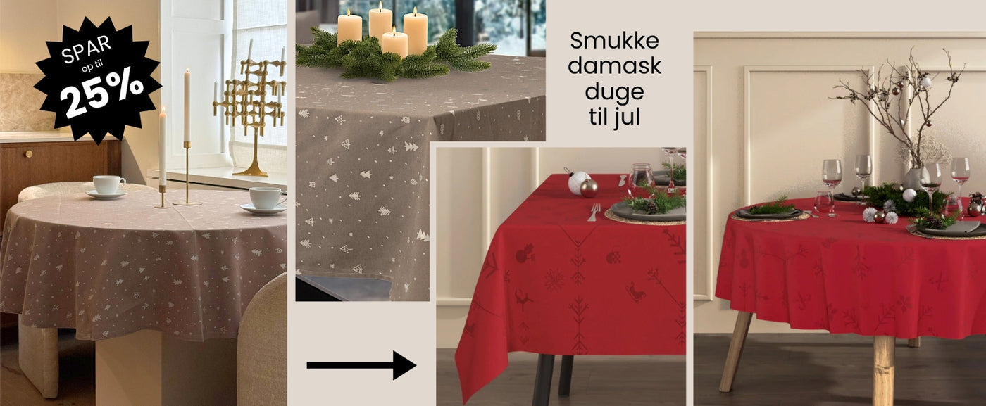 Du kan få næsten alle vores duge som runde, ovale eller med elastik. Gå ind på den ønskede dug for at se, om disse muligheder er tilgængelige.