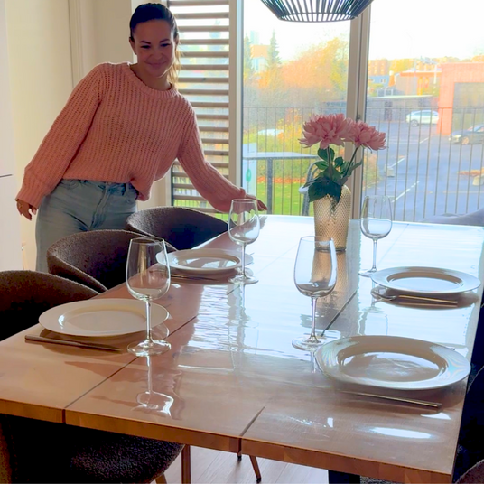 Vores kraftige, gennemsigtige voksdug er løsningen! Den beskytter dit bord uden at skjule det – og så ligger den flot, fast og uden folder fra start.