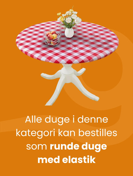 Vi kan desværre ikke sy elastik på ovale og firkantede duge, da elastikken kommer til at hænge slapt hen langs siderne på bordet.
