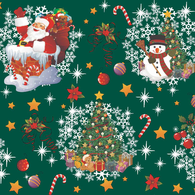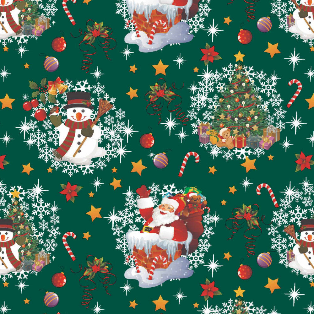 Bamses Jul Mørk Grøn - Julevoksdug med Bamse, Jule- og Snemanden