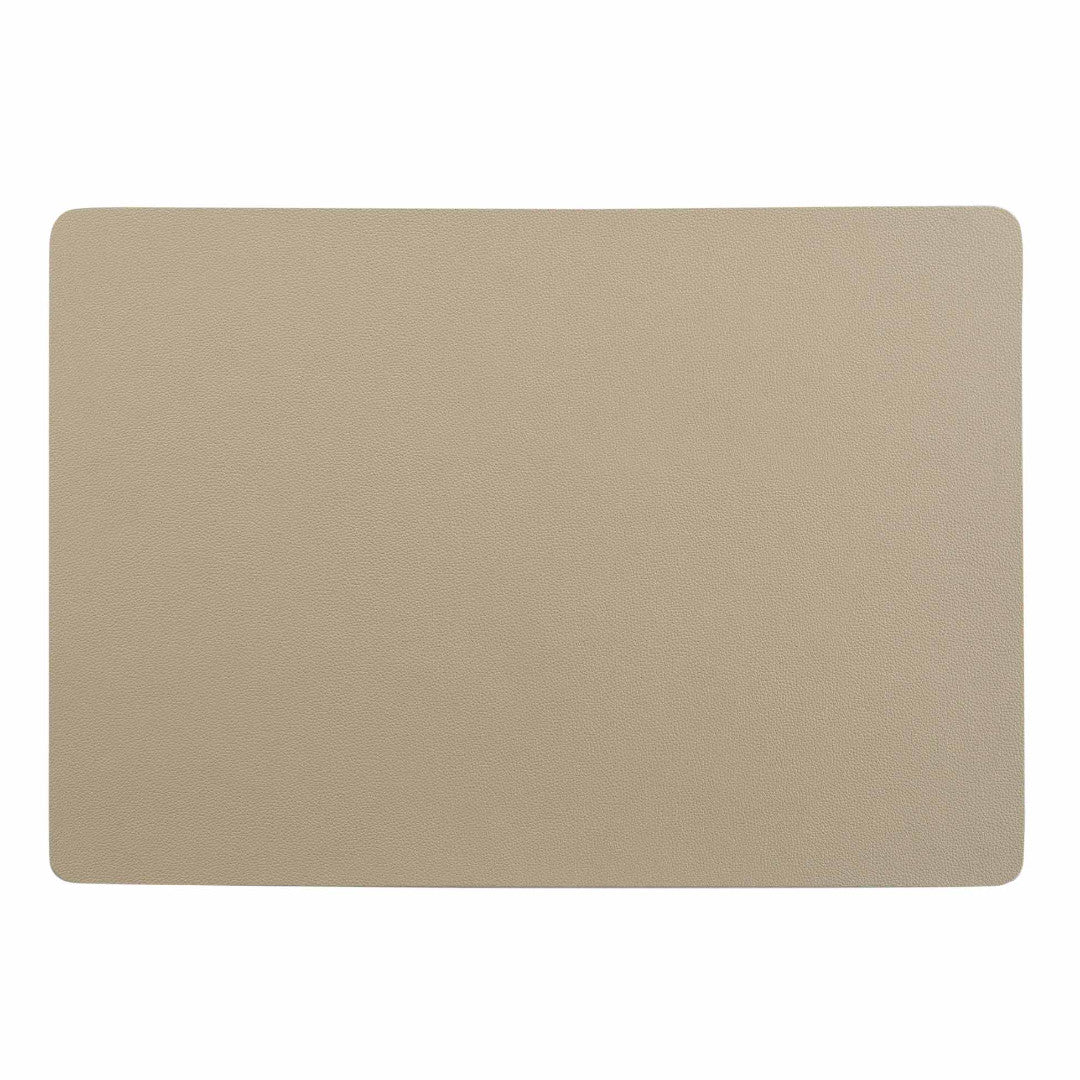 Denne naturfarvede dækkeserviet i imiteret læder giver borddækningen et lyst og varmt udtryk. Farven minder om sand eller beige og passer smukt til både træborde og lyse flader.
