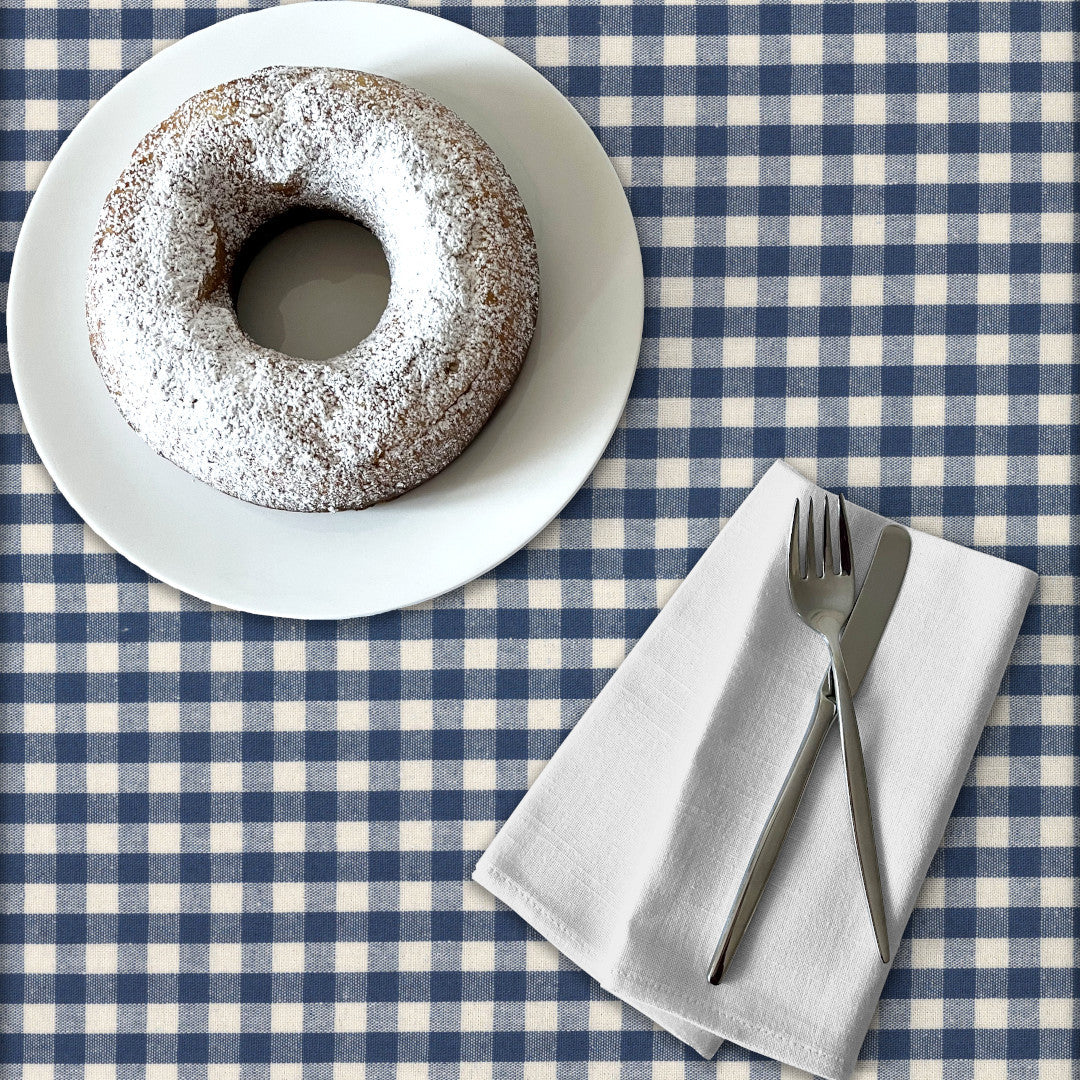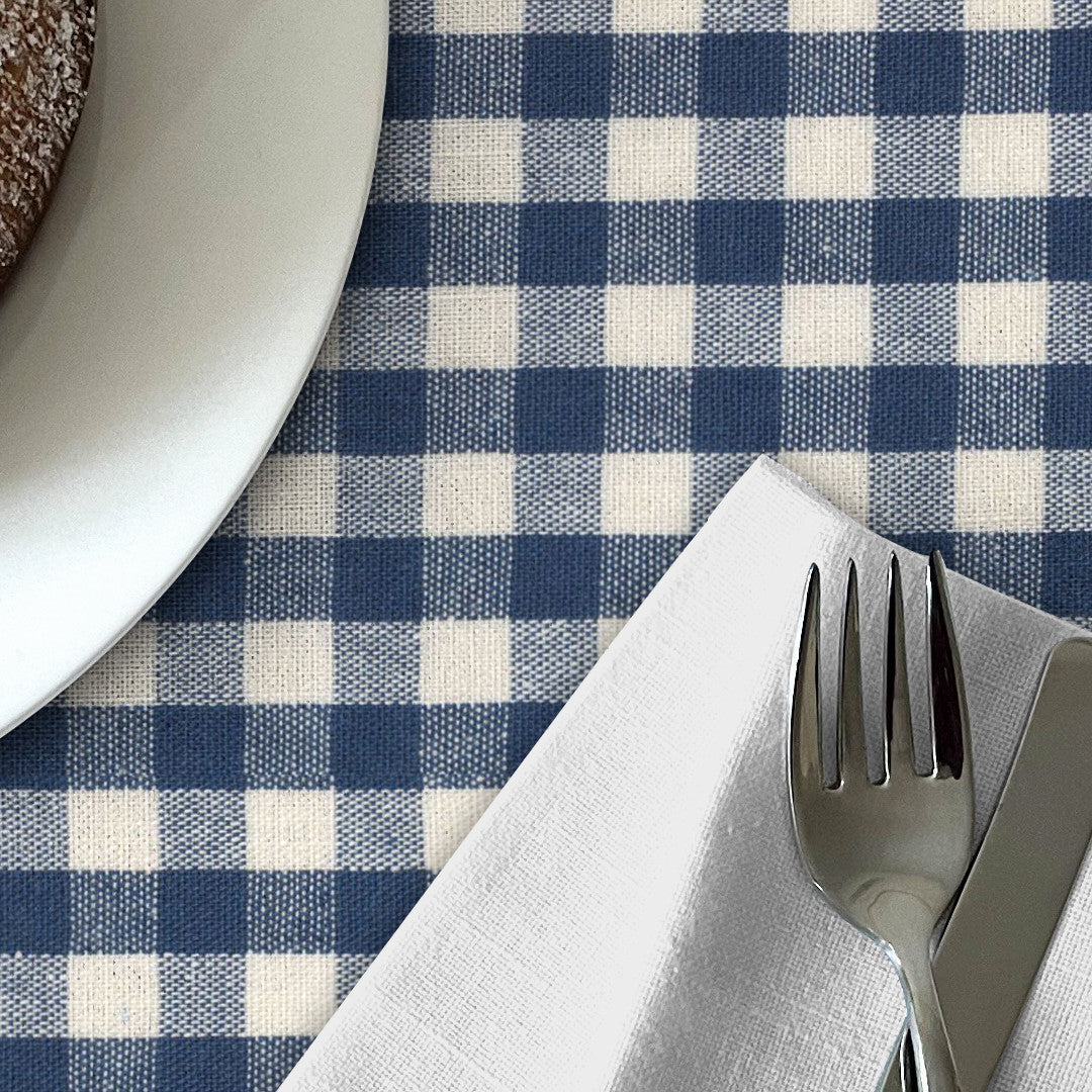Et klassisk ternet mønster i dyb blå og naturfarve giver denne akryldug et tidløst og hyggeligt udtryk. Det enkle design passer perfekt til både landlig charme og moderne minimalisme, hvilket gør den velegnet til enhver borddækning.