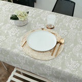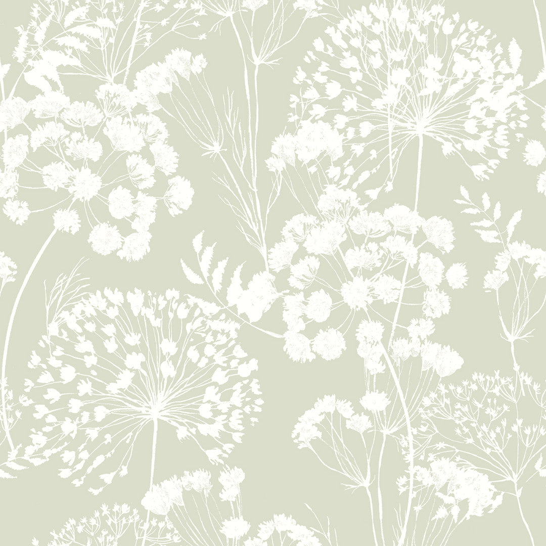 En fin og underspillet akryldug med florlette silhouetter af skærmblomster og vilde urter. Mønstret står i en lys, støvet grøn på næsten hvid baggrund, hvilket giver et roligt og harmonisk udtryk. Farverne gør dugen nem at matche med både lyse og naturlige toner i indretningen – ude som inde.
