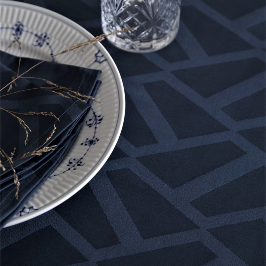 Den elegante Compliments Ice Damaskdug i blå er fremstillet i 100% bomuld og vævet i et is-inspireret damaskmønster, der spiller smukt sammen med lyset. Den dybe blå farve giver en rolig og klassisk stemning omkring bordet.