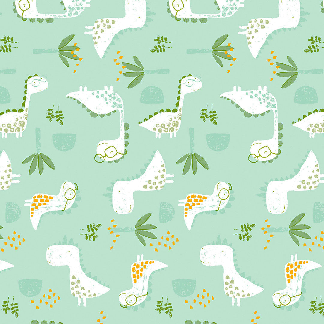 Dinocroc Lyseblå - Captain Cook voksdug med sjove dinosaurer