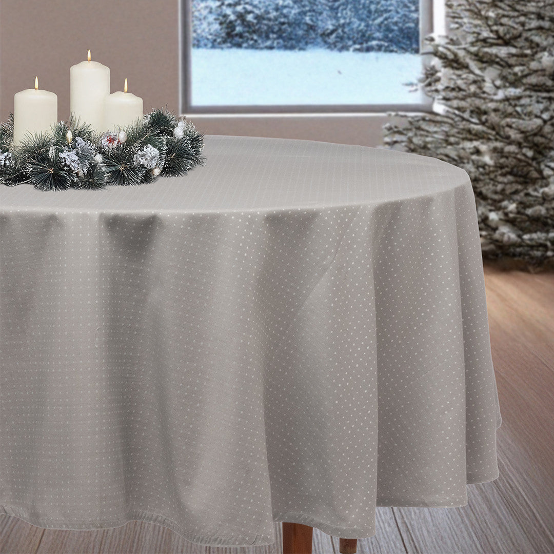 Dotea Grå Blå - Rund damaskdug med prikker, Ø 200 cm