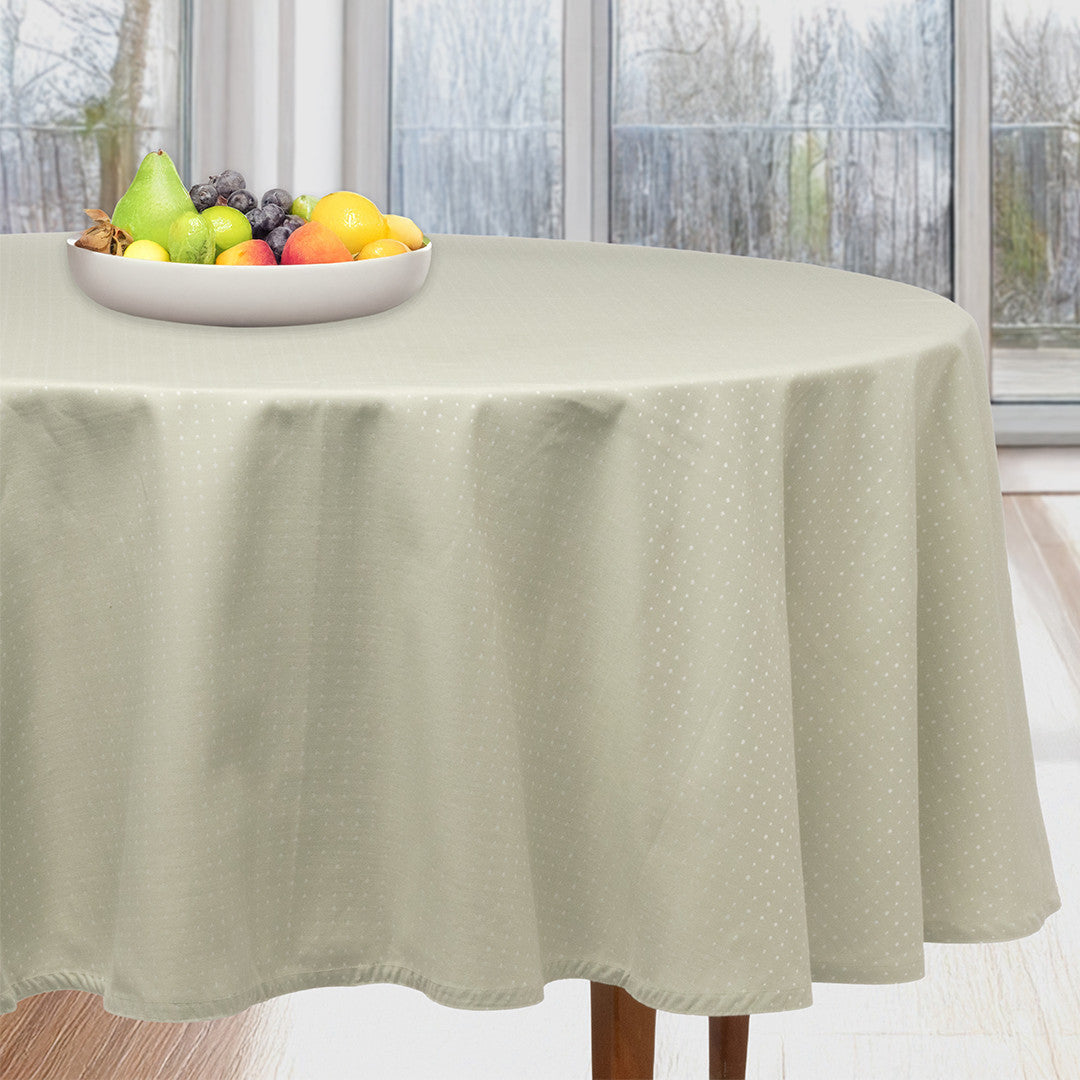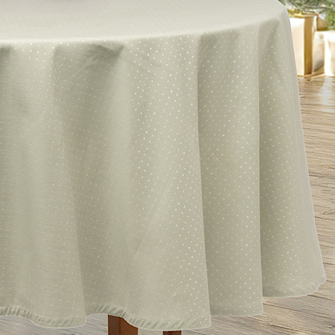Dotea Sage - Rund damaskdug med prikker, Ø 160 cm