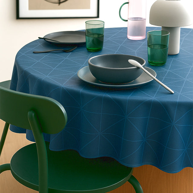 Engholm Tilde Rund Damask dug, blå Ø 180 cm