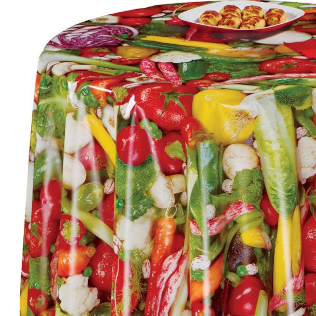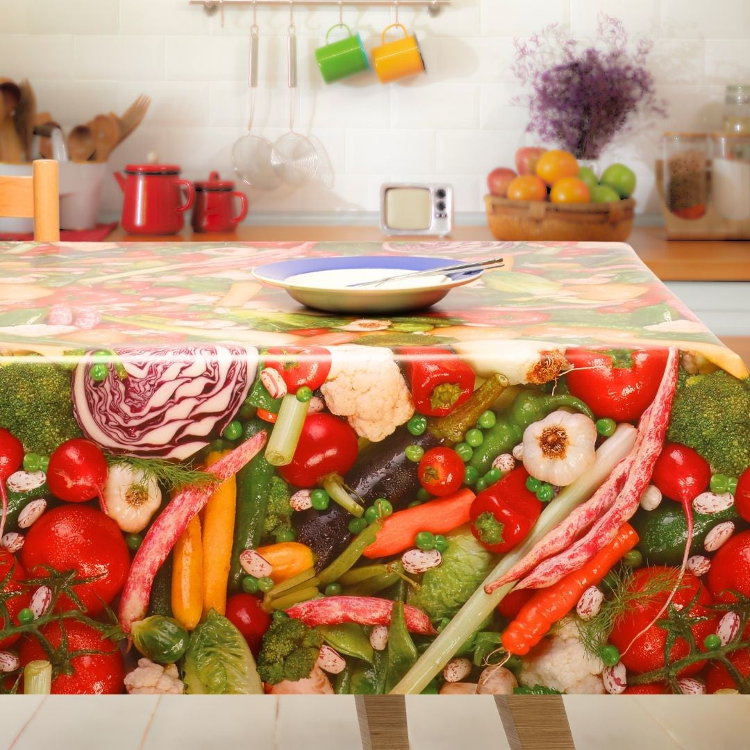 En praktisk og dekorativ voksdug, der kombinerer funktionalitet med sprudlende farver og madglæde.