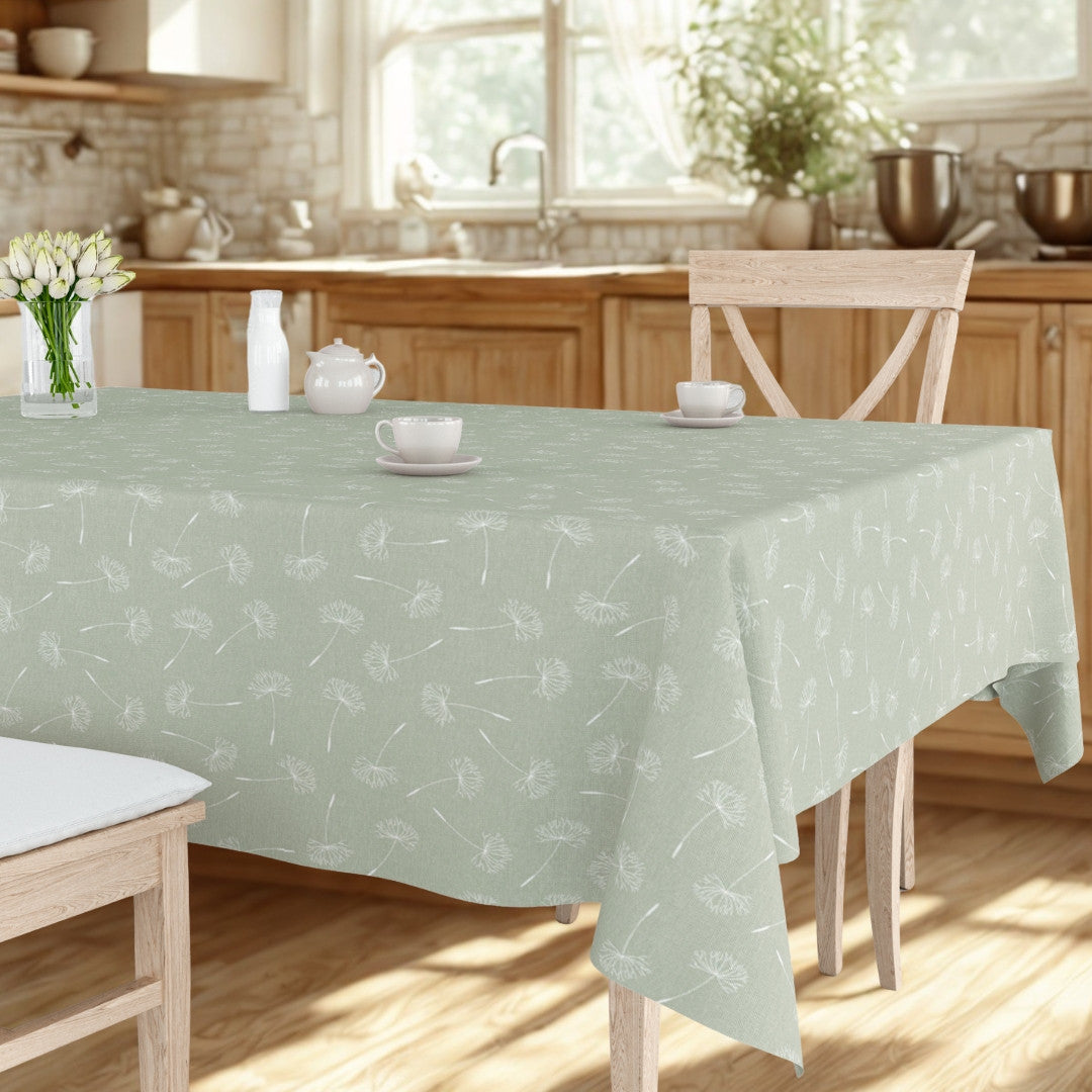 Det fine mønster er inspireret af mælkebøttens florlette frøstande, og dugen bringer en naturlig og let stemning til borddækningen – året rundt.
