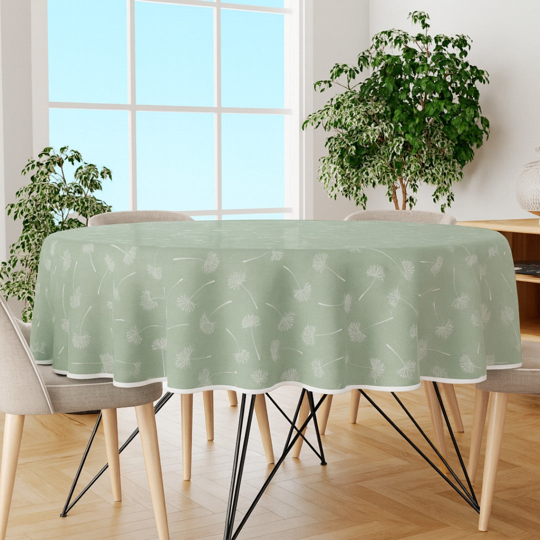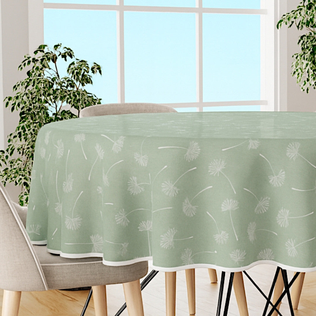 Frøvik Grøn bringer et frisk pust til bordet med sin lyse støvede grønne farve og det luftige mønster af svævende mælkebøttefrø. Den runde voksdug har en glat overflade og et naturligt hørlook, der skaber en rolig og indbydende stemning.
