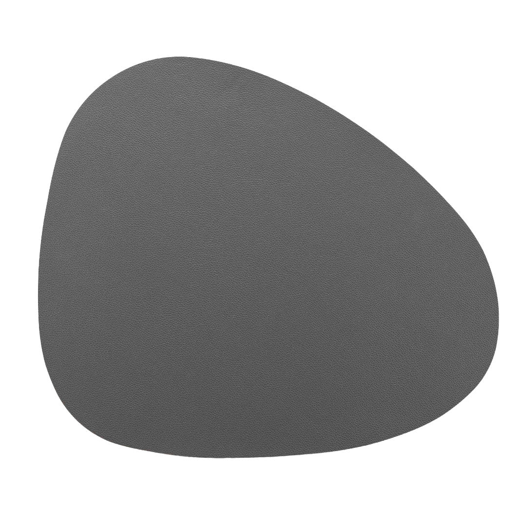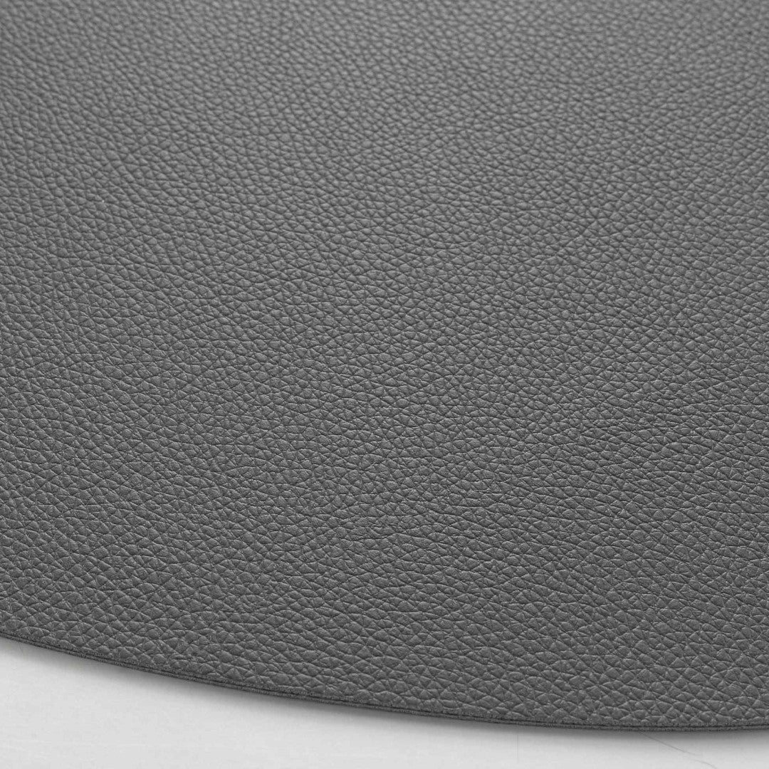 Denne dækkeserviet i imiteret læder har en blød, organisk form, som giver borddækningen et moderne og afslappet udtryk. Den grå farve er tidløs og passer lige godt til både lyse og mørke bordopstillinger.