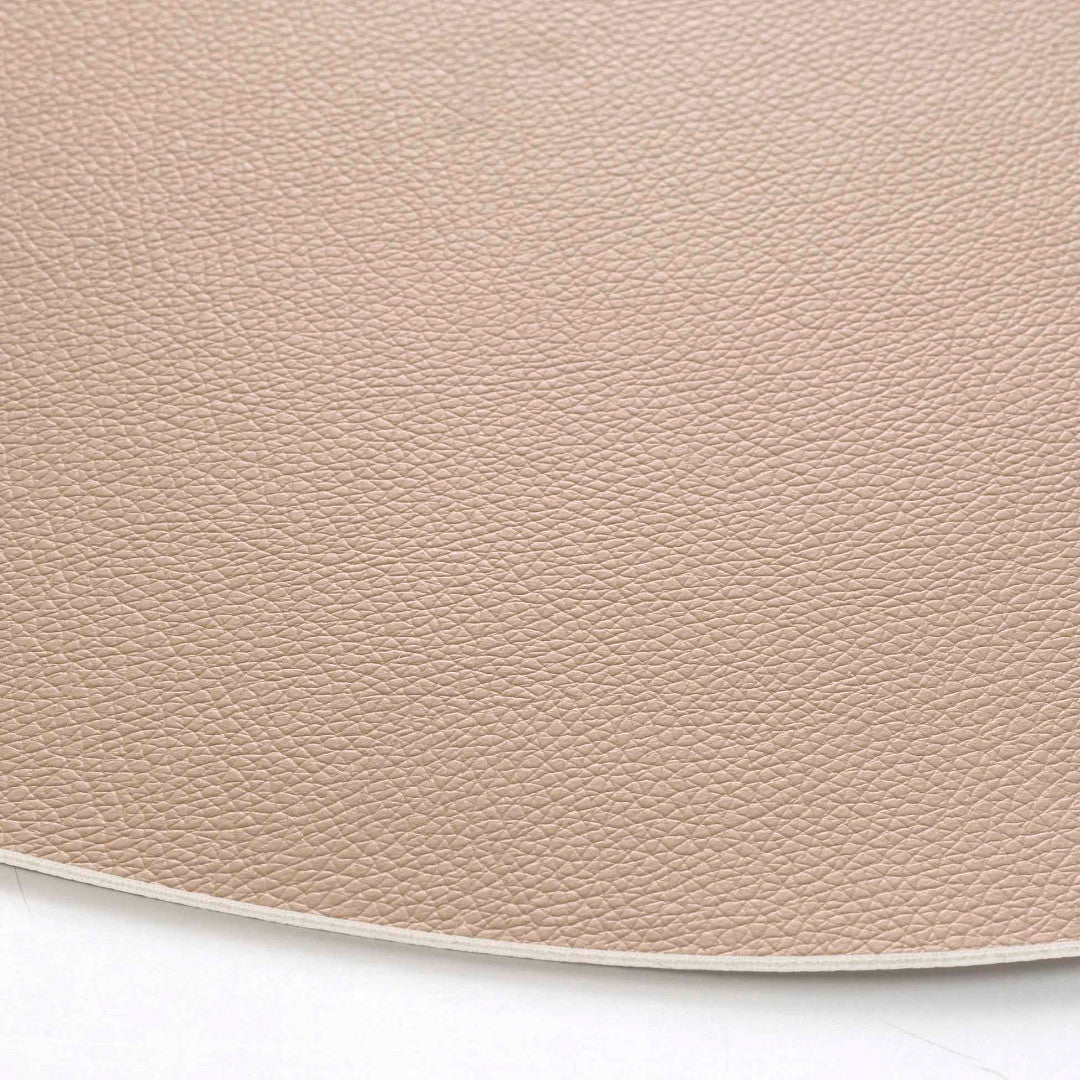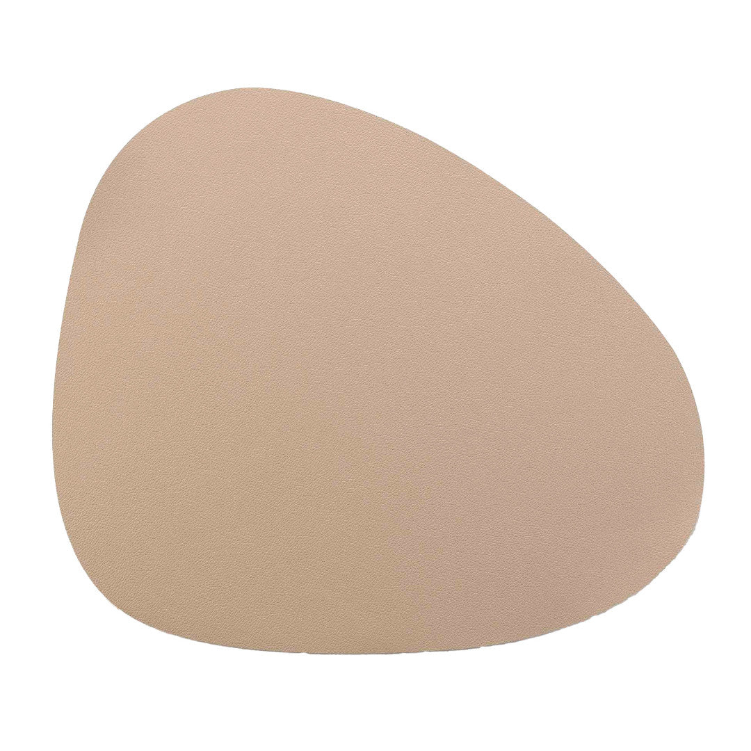Denne dækkeserviet i imiteret læder har en blød, organisk form, som giver borddækningen et moderne og afslappet udtryk. Den naturfarvede nuance minder om sand og tilfører varme og ro til bordet – perfekt til både hverdagsbrug og gæstemiddage.