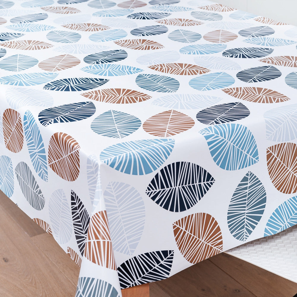 Grafiske Blade Brownie, voksdug med flotte blade i grå, sort, blå og brun