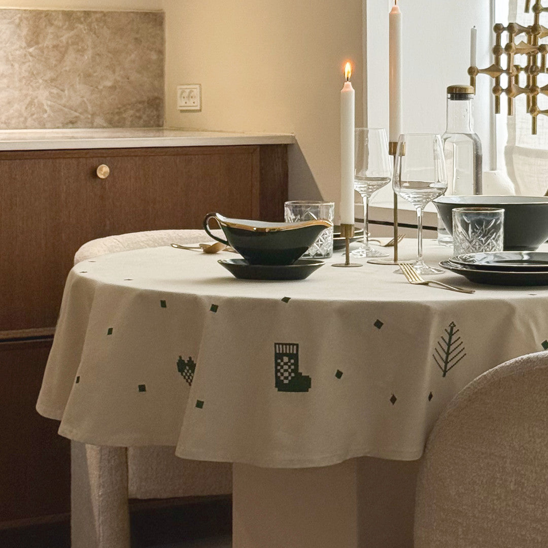 Julia Grøn kan lægges under juletræet eller bruges som dug på et mindre bord – en praktisk og dekorativ løsning, der samler hjemmet om julens enkle traditioner.