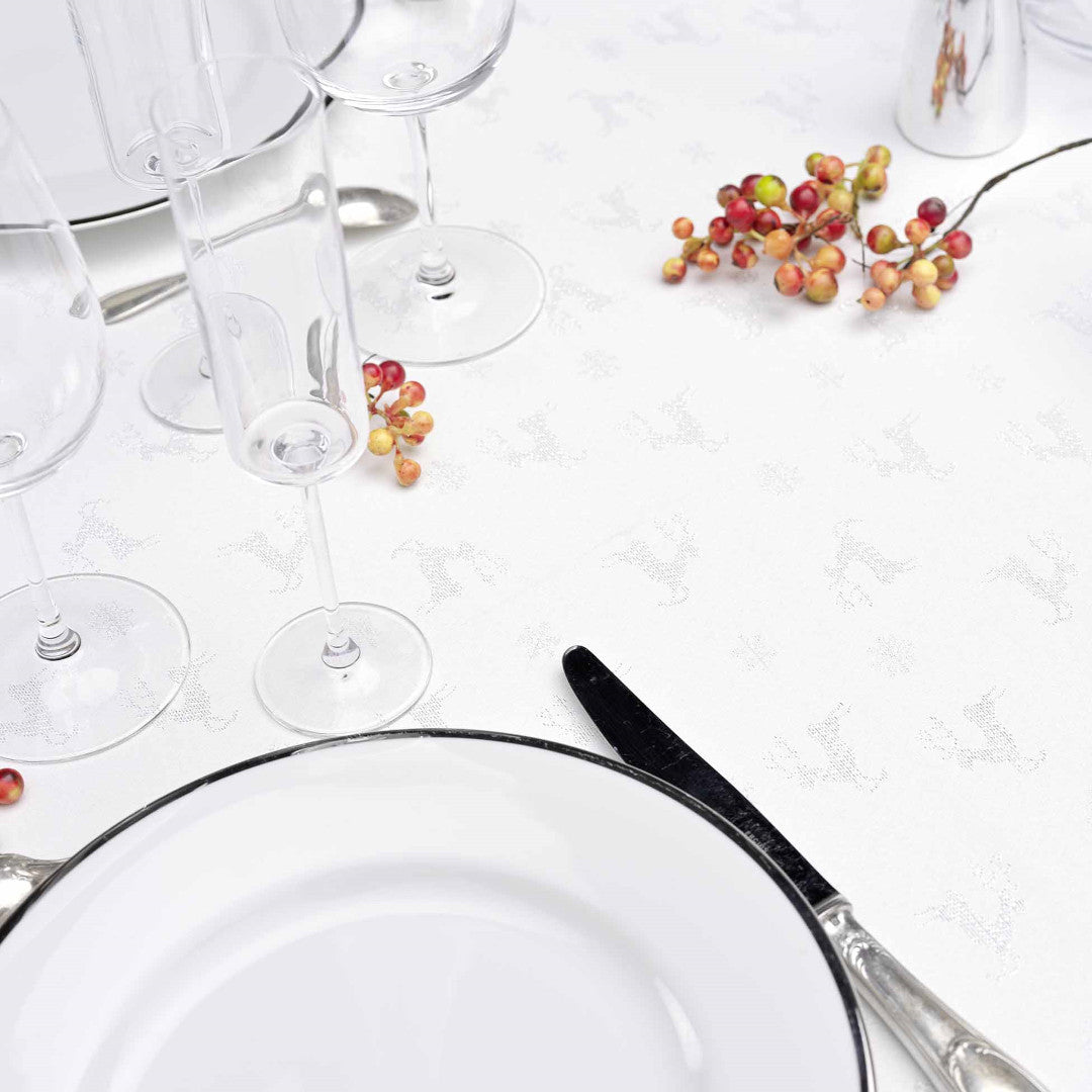 Les Rennes Metallic Hvid 140 x 250 cm, rektangulær juledug med anti-plet