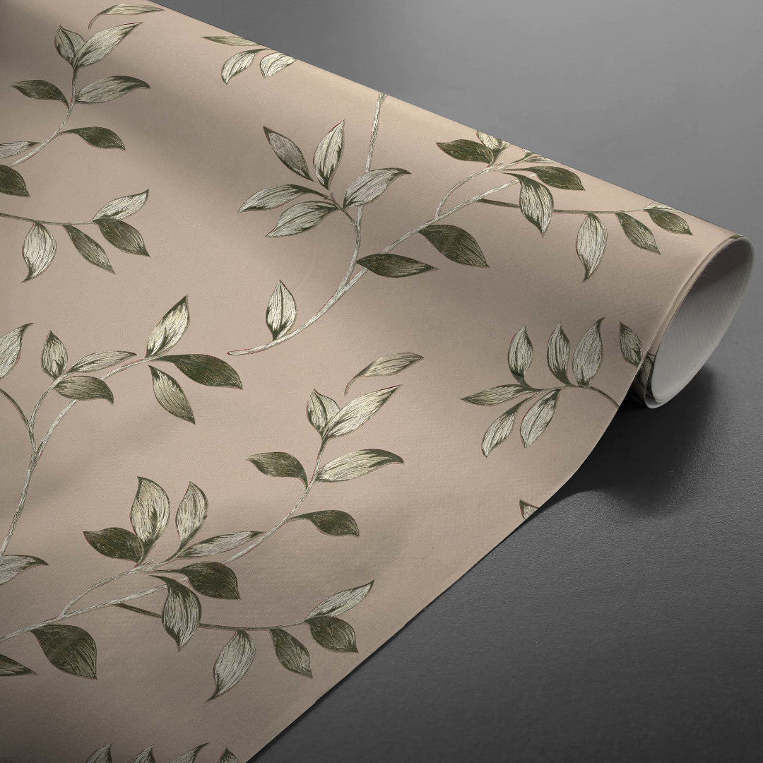 Liane Golden Vine - Voksdug med bladranker i grønne og gyldne nuancer