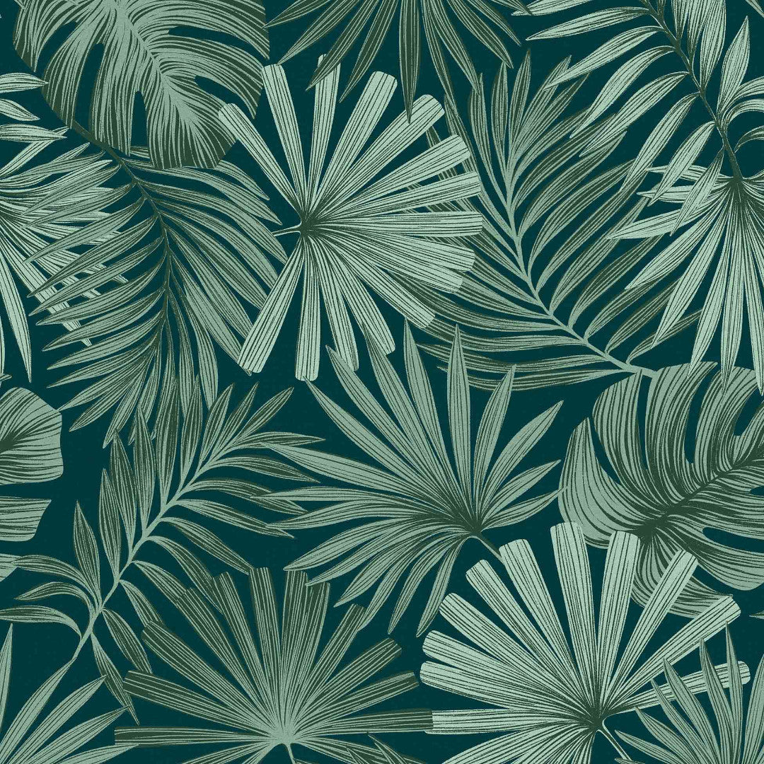 Malawi Vert er en elegant og stemningsfuld voksdug med et grafisk bladmotiv i lysegrønne nuancer på en dyb, mørkegrøn bund. Mønstret består af stiliserede palmeblade og fjerlignende former, som ligger tæt og skaber et roligt, men levende udtryk.