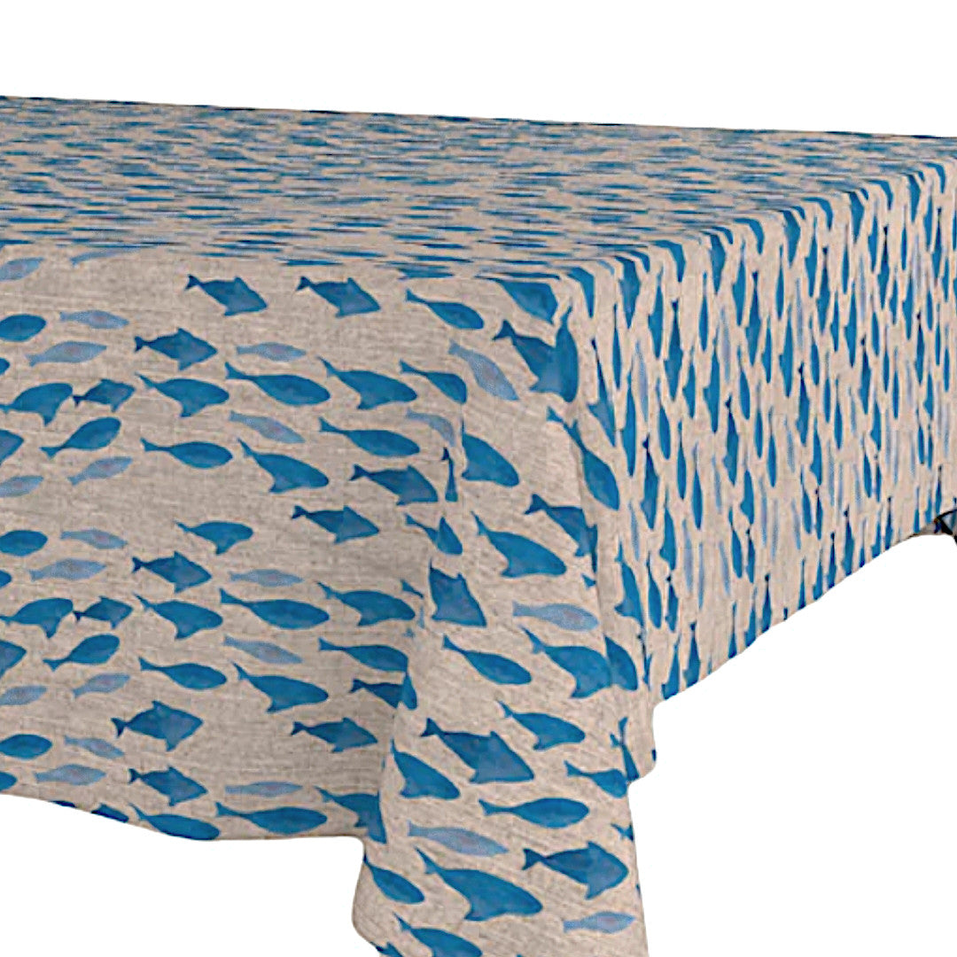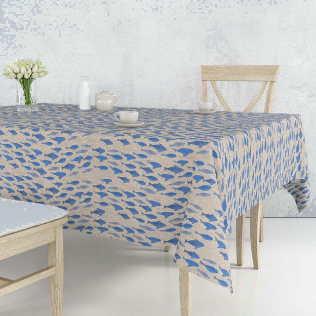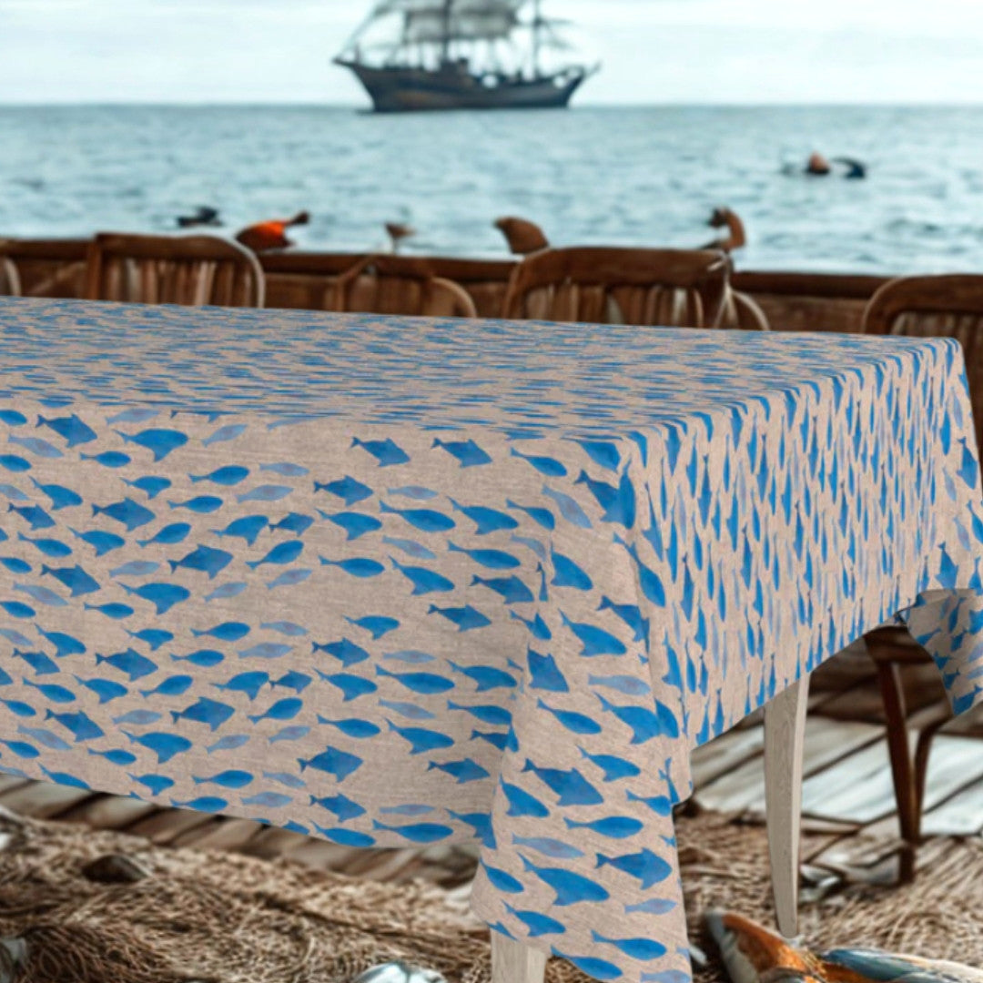 Marino Blåfisk – Akryldug i hørlook med maritimt mønster Er i restordre og vil blive afsendt, så snart det er tilbage på lager.