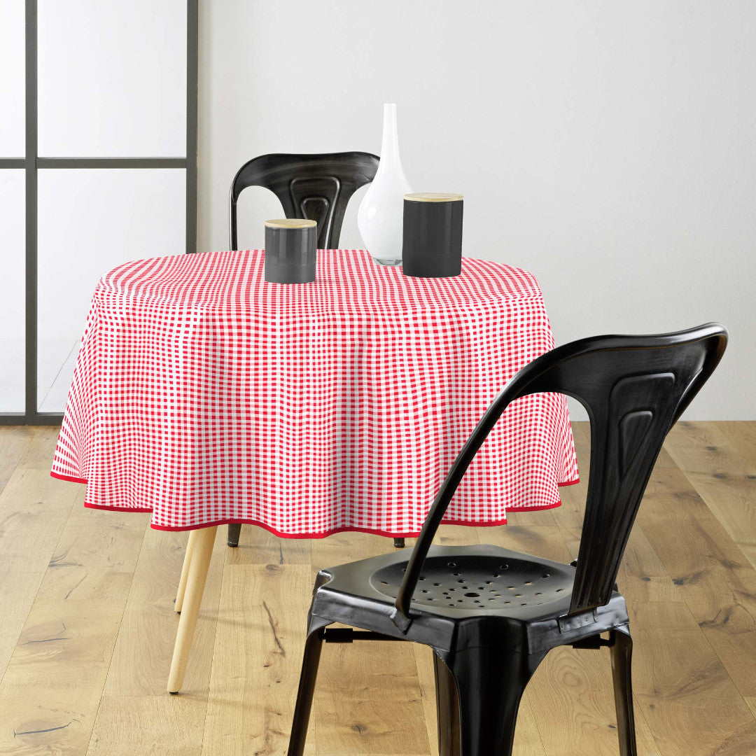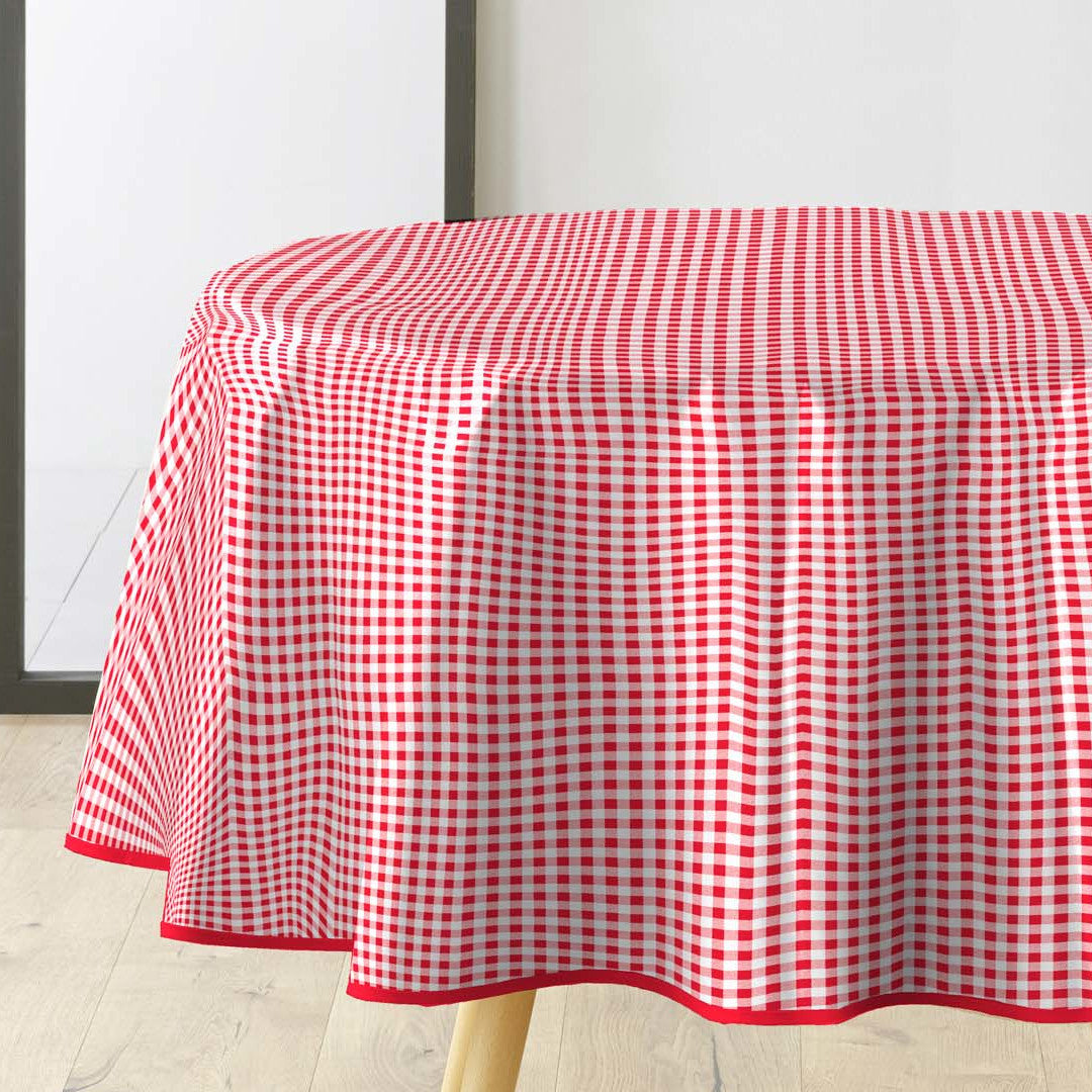 Mini Vichy Rød - Rund voksdug med tern, Ø 155 cm