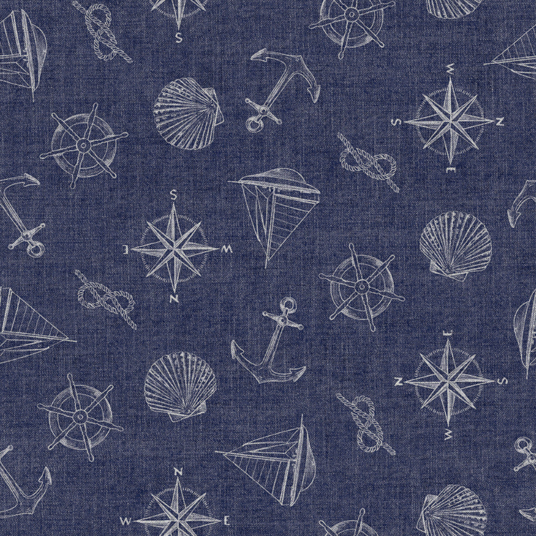 Nordfavn Captain - Blå voksdug med maritime motiver