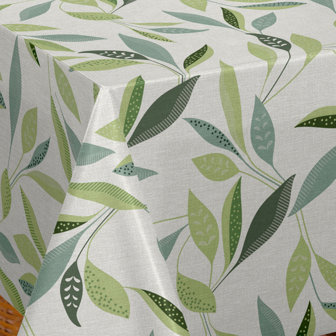 Nordfavn Class Grøn er en stilren voksdug med et grafisk bladmønster i rolige grønne nuancer på en lys bund. De slanke blade og det afstemte farvespil skaber et let og harmonisk udtryk, som bringer naturens ro ind i borddækningen og passer perfekt til den nordiske indretning.