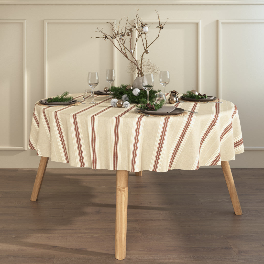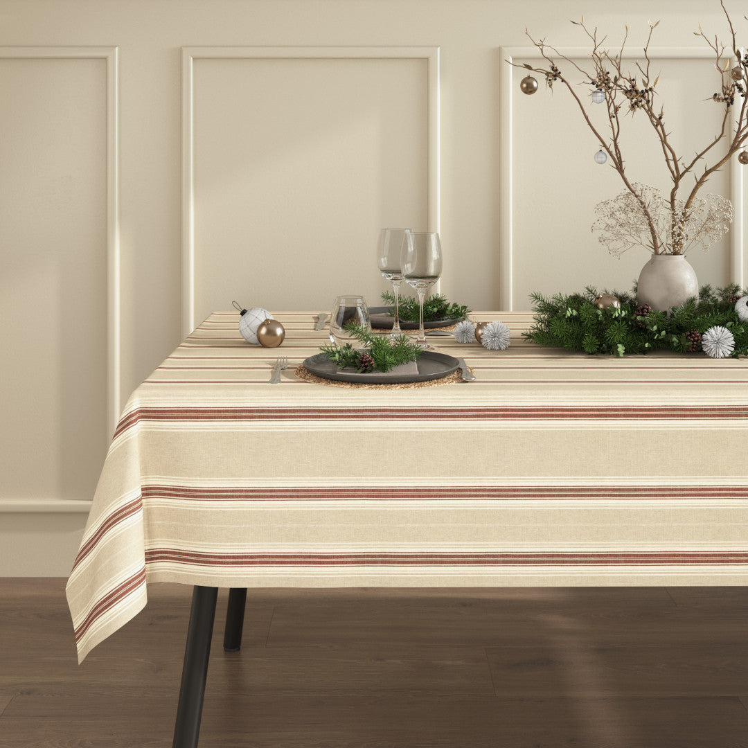 Dæk et varmt og indbydende julebord med Nordisk Julestribe Rød, en smuk juledug i hørlook med klassiske nordiske striber. Dens røde og naturinspirerede farvetoner skaber en hyggelig og traditionel stemning, der er perfekt til julens mange begivenheder.