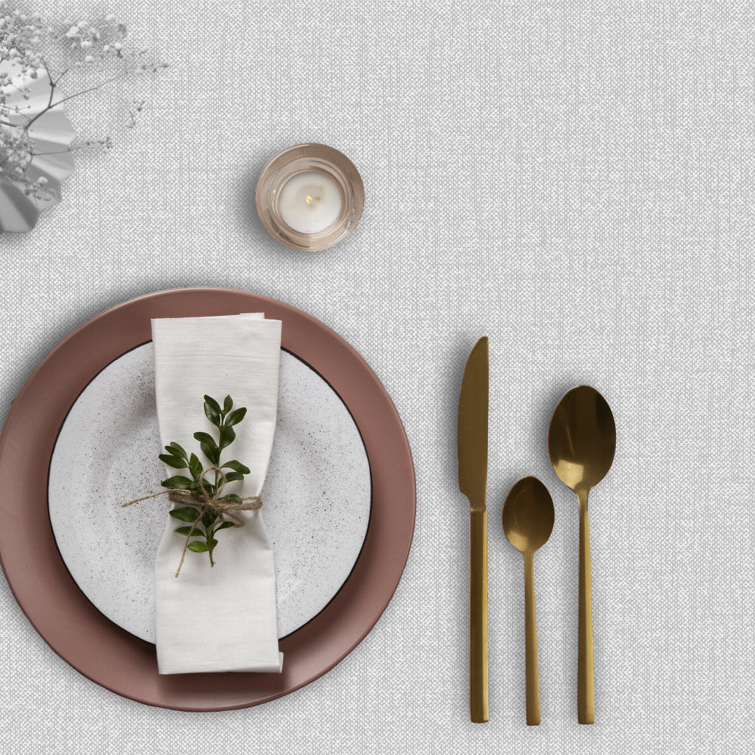 Denne voksdug har en elegant lys grå farve, der ligger et sted mellem hvid og grå. Den neutrale nuance gør den let at kombinere med forskellige bordopdækninger og indretningsstile. Den har et fint diskret hørlook, der giver en let tekstureret overflade og et naturligt udtryk.
