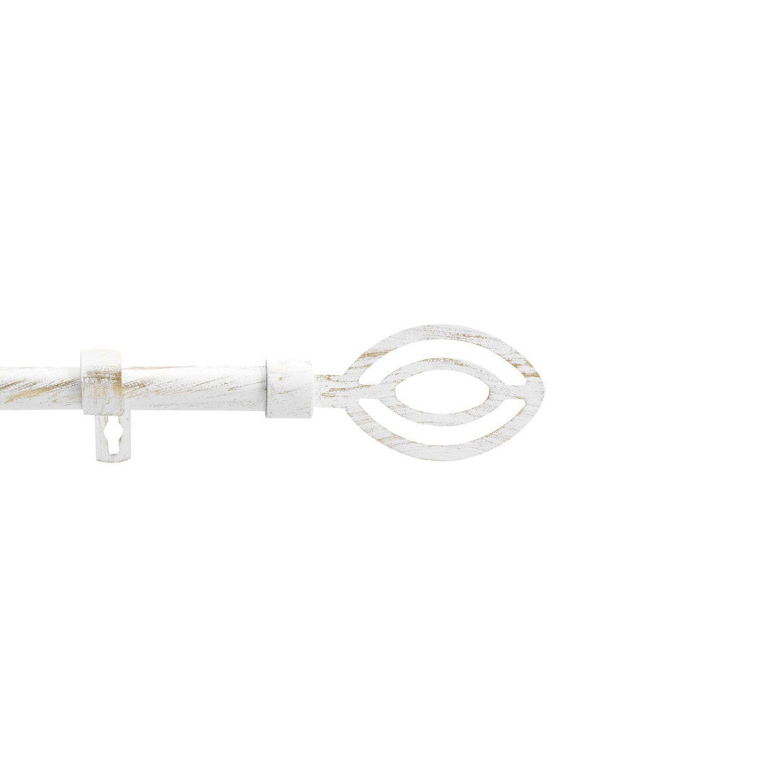 Patina Alpha gardinstangen i hvid og guld kombinerer et elegant udtryk med et strejf af vintage-charme. De dekorative endestykker med dobbelte ovale former giver designet et let og harmonisk look, mens den børstede overflade i hvid og guld tilfører varme og karakter.