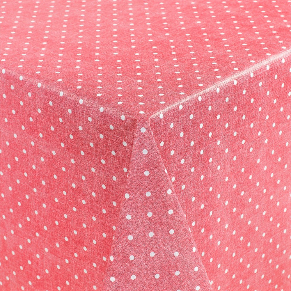 Polkaprikker på rød/pink bund - Rund voksdug med elastik Er i restordre og vil blive afsendt, så snart det er tilbage på lager.