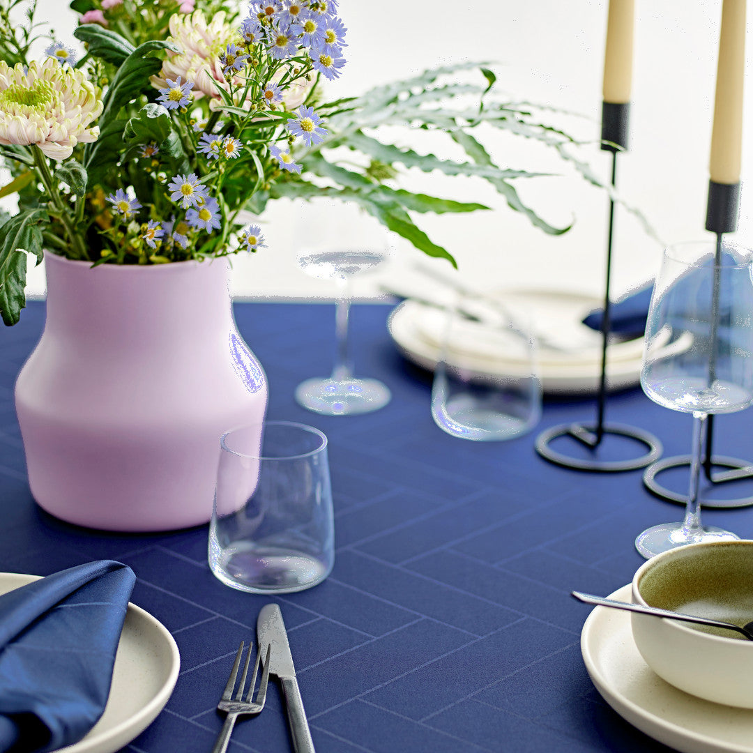 Södahl Tiles Rund Damaskdug Ø 180 cm - Indigo Er i restordre og vil blive afsendt, så snart det er tilbage på lager.