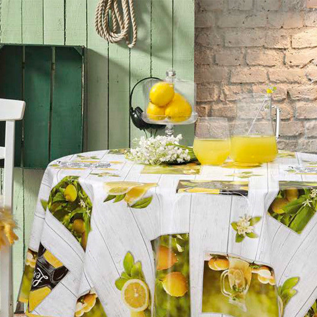 Sommer og Citroner - Voksdug med citroner på grå planke bund
