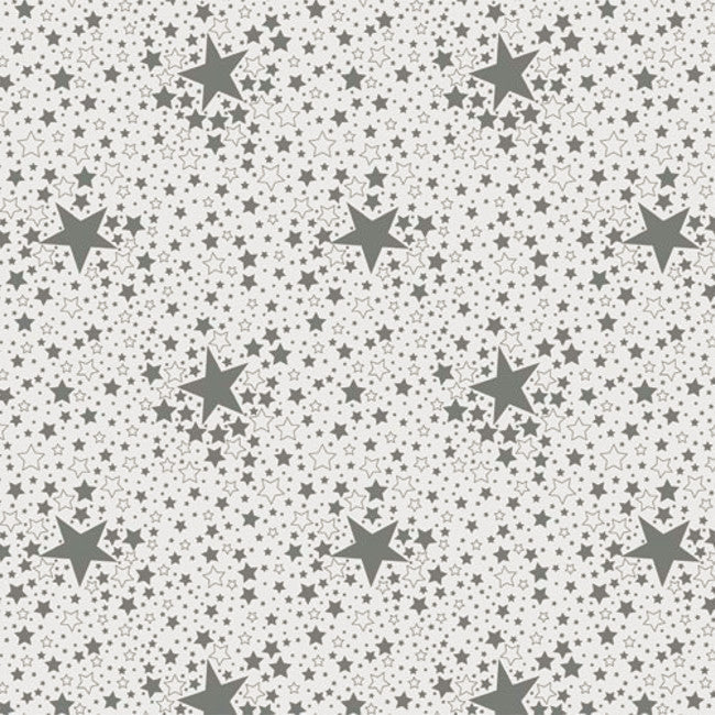 Stjernehimmel Sølv - Julevoksdug med sølvstjerne på hvid bund