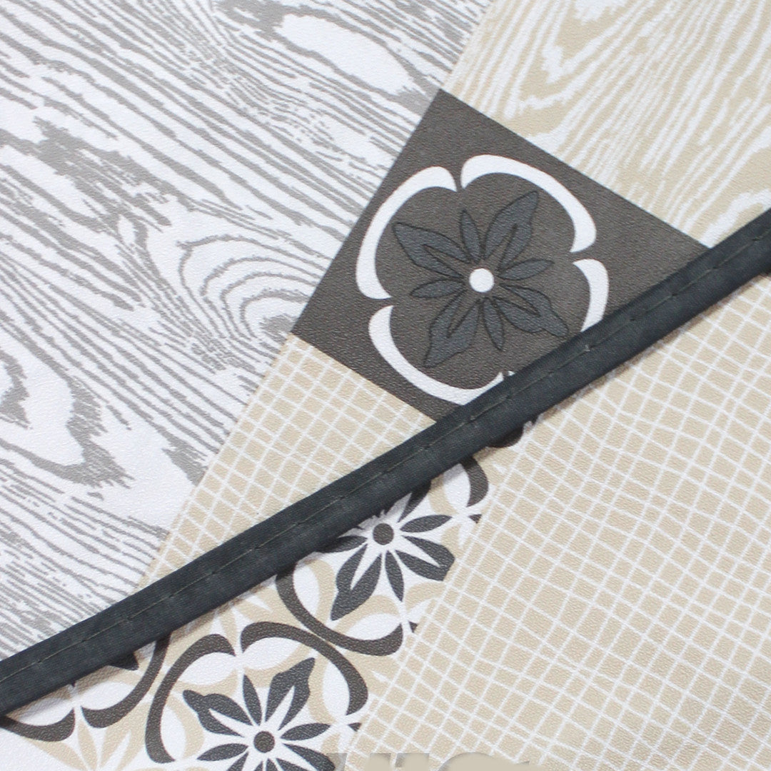 Textilia Costa rund voksdug med et flot motiv på Ø 155 cm er dekoreret med et smukt patchwork-design, der består af forskellige geometriske mønstre og blomsterinspirerede elementer. Farvepaletten holdes i neutrale toner som beige, grå og sort, hvilket skaber et harmonisk og tidløst udtryk. Kombinationen af mønstre og strukturer giver dugen en spændende visuel dybde, samtidig med at de afdæmpede farver gør den velegnet til forskellige typer af indretninger.