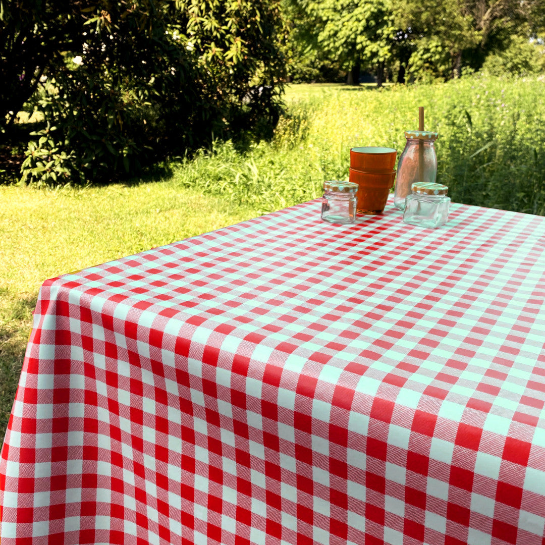 Voksdug med klassiske 1,5 x 1,5 cm tern - 140 cm bred - Rød