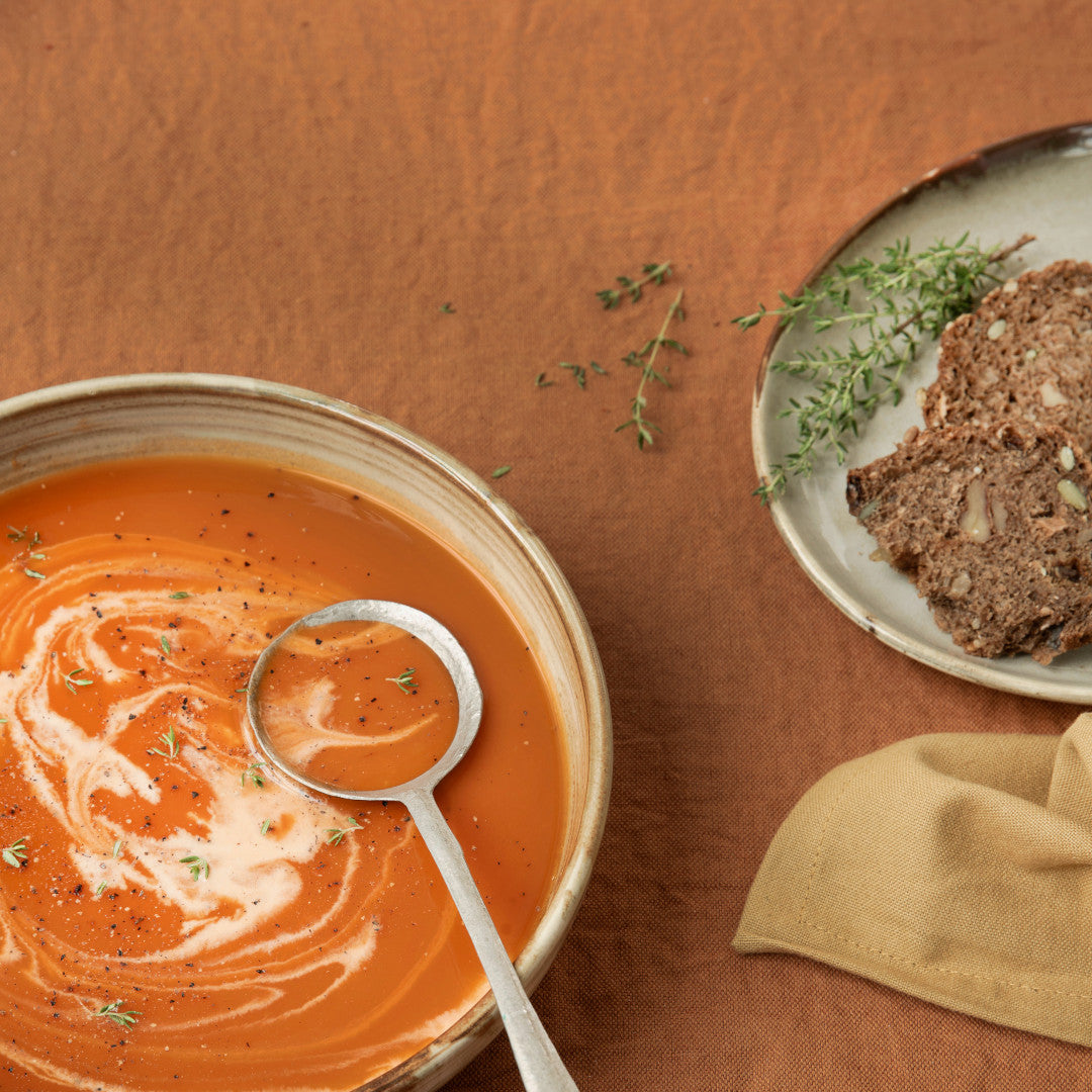 Den rustrøde farve – også kendt som henna – har en varm, jordnær tone, der skaber en rolig og indbydende stemning omkring spisebordet. Farven fremhæver træ, keramik og glas smukt og fungerer året rundt – fra sensommerens varme middage til hyggelige efterårsaftener.