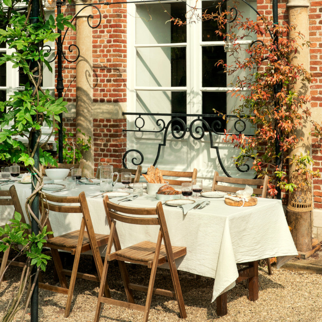 Når bordet er bredere end standard, kræver det en dug med de rette proportioner. Essence Ivory i 180 x 300 cm er en ekstra bred hørdug, der sikrer et harmonisk fald hele vejen rundt – også på større plankeborde.