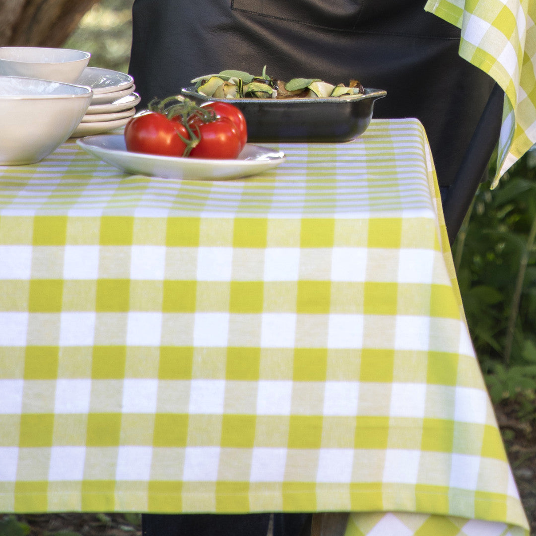 WOW Spring Evergreen 150 x 150 cm er en frisk ternet bomuldsdug i en klar grøn nuance kombineret med hvid. De klassiske tern får et let og energisk udtryk i den grønne farve, som leder tankerne mod forår, nye blade og lyse måltider.