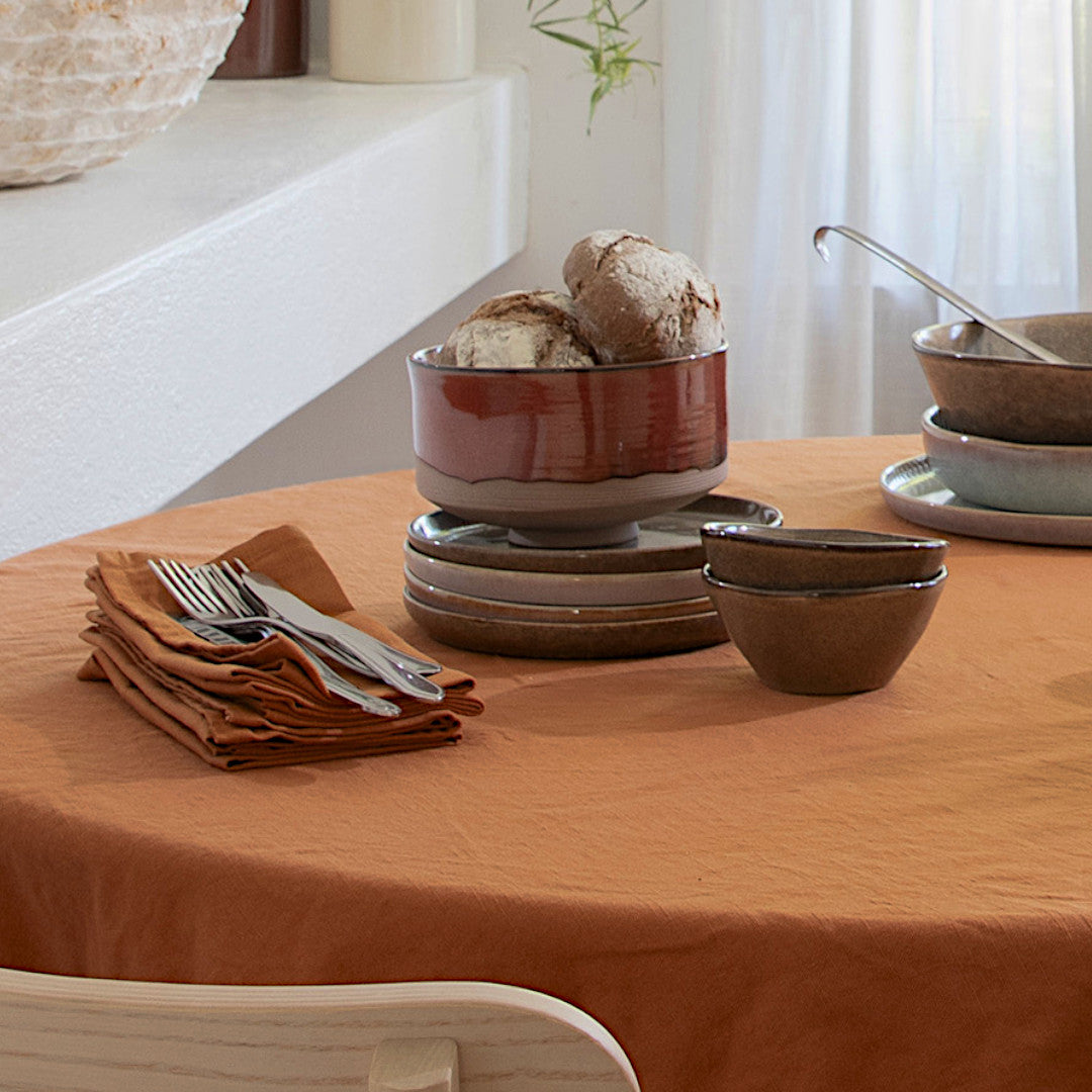 Genanvendelige stofservietter er et bevidst valg – både æstetisk og praktisk – og de bidrager til en mere gennemført bordopdækning. Essence Henna løfter helheden og skaber balance mellem det rustikke og det raffinerede.
